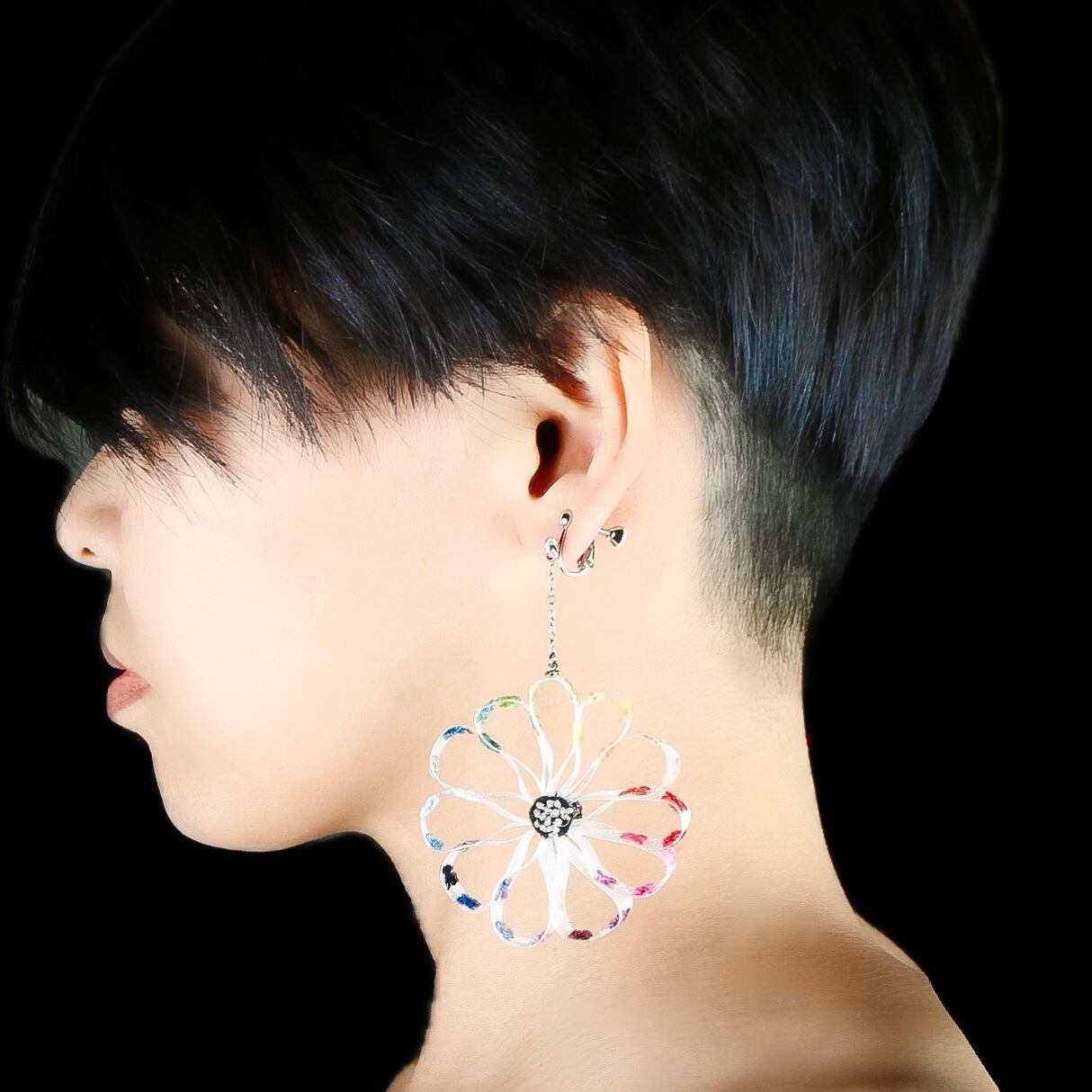 大ぶりで華やかな造形と共に、草木染めの上品なカラフルさが絶妙なアクセントとなり、どんな方にもぴったりの一品です。
